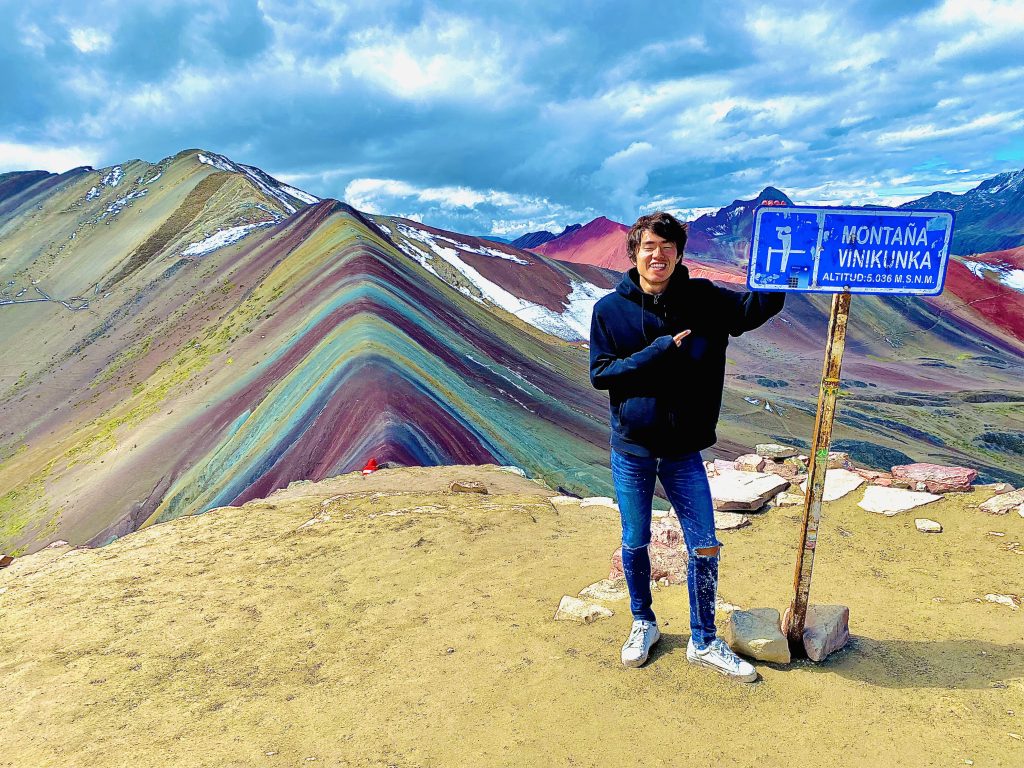 ここはVinicuncaという山で、昔は何もなかったらしいのですが、6年前の2016年に急にレインボーになった山です。コロナ前は観光客が数千人単位で来ていて写真もろくに撮れないくらいだったそうですが、コロナ真っ只中の時に行ったので観光客は全然いませんでした。50年後にはレインボーがなくなるそうなので早めに行く事をおすすめします。